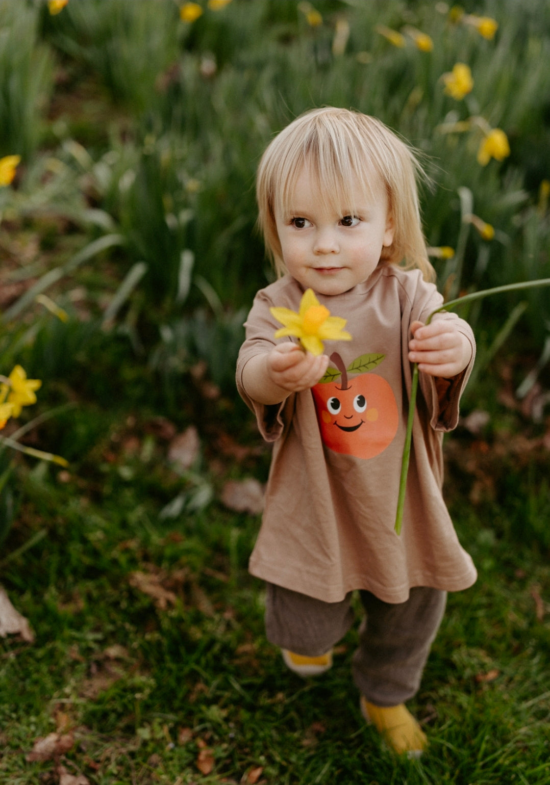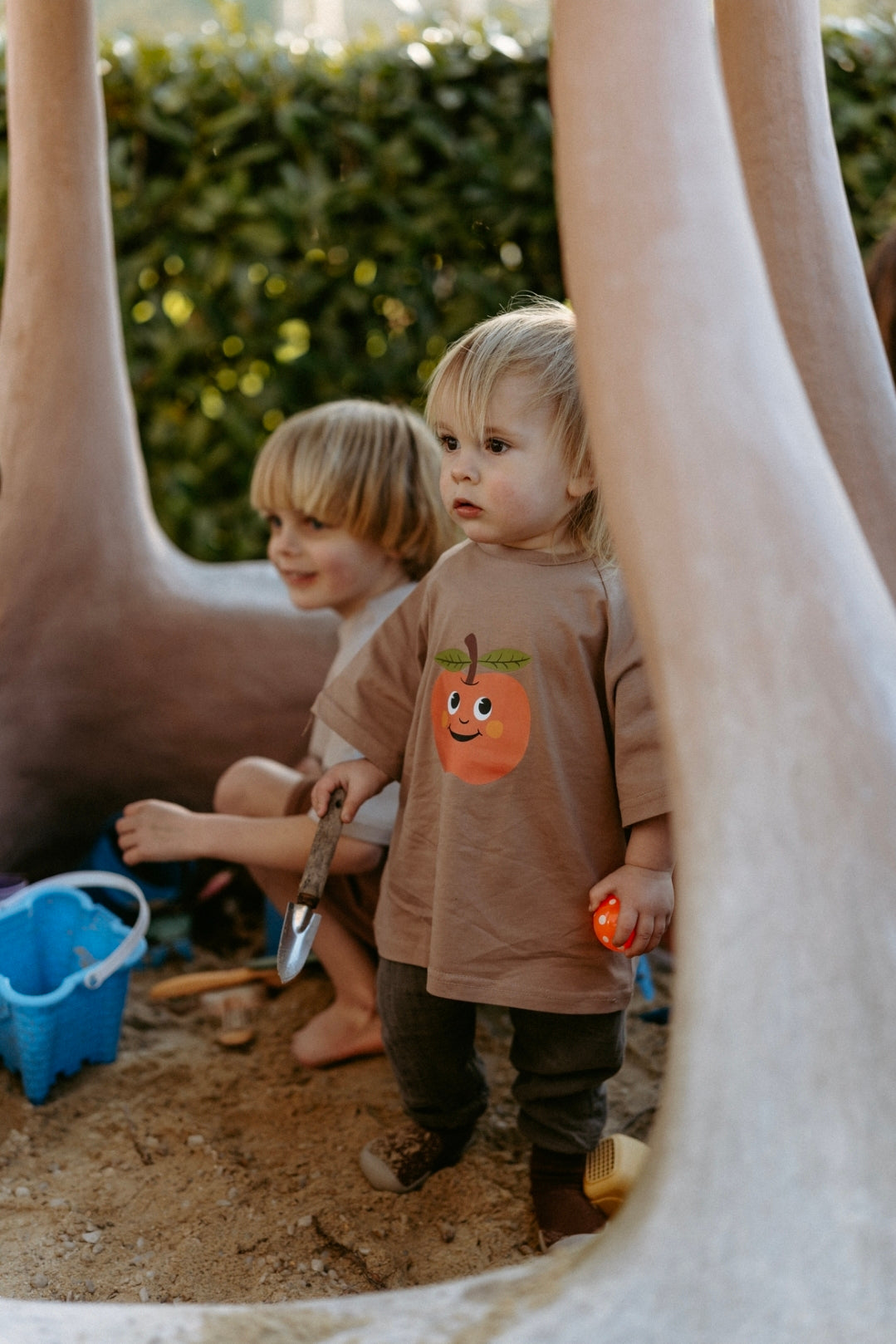 Pair with some pattern pants and a pair of brown Sols and it's good to go! This apple tee is one your child will love to wear!