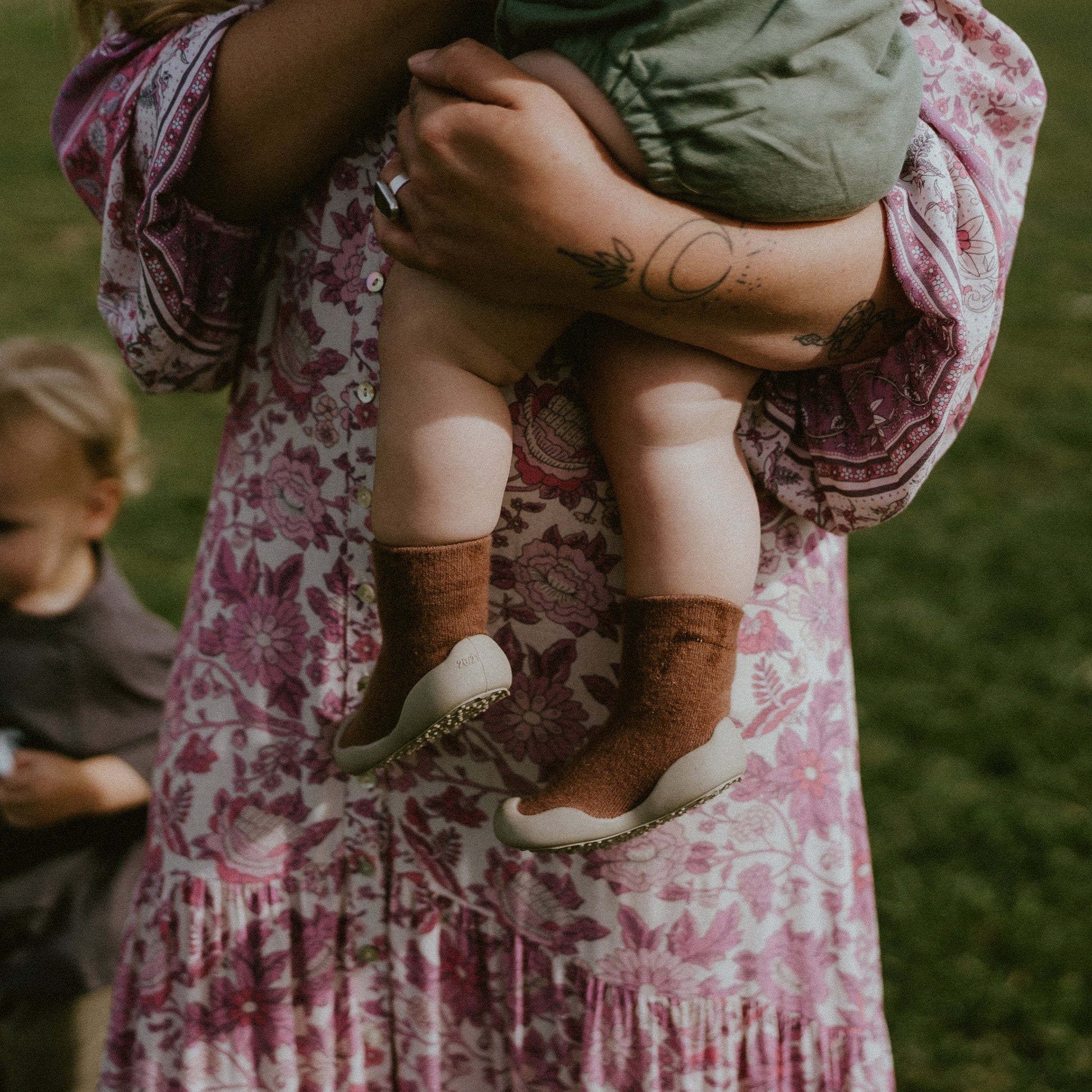 We LOVE these little sock shoes for first time walkers. They are so easy to slip on, stay on their little feet but also give them the freedom of movement just like they’d be in bare feet! Most fav part, machine washable AND dry quickly for the next adventure