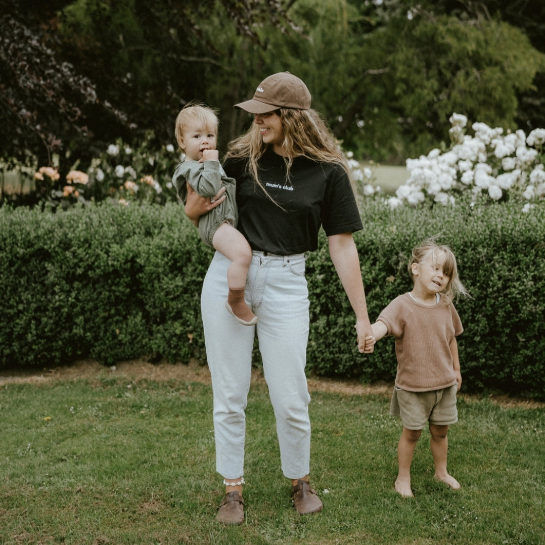 Our mum's Club tees are a super comfortable, oversized fit.